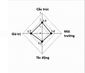 Nỗ lực quốc tế nổi tiếng nhất là Chỉ số Xã hội dân sự(CSI) do CIVICUS ở Việt Nam và 52 quốc gia khác thực hiện trong giai đoạn 2001-2011.8 Chỉ số này được xây dựng dựa trên bốn khía cạnh lớn của XHDS: cấu trúc, môi trường bên ngoài, các giá trị, và ảnh hưởng - các khía cạnh này được minh họa theo hình kim cương (Hình 2). Trong số đó, khía cạnh môi trường bên ngoài có mối liên hệ trực tiếp nhất đến không gian XHDS, tương tự như một số yếu tố của khía cạnh cấu trúc.