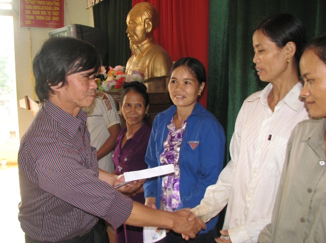 (VHNA): Ngày 10-10, Công đoàn Bộ VH,TT&DL đã trực tiếp về huyện Vũ Quang và Hương Khê (Hà Tĩnh) trao số quà do cán bộ, công chức, viên chức Bộ đóng góp ủng hộ, chia sẽ với đồng bào vùng bị lũ lụt. Tại huyện Hương Khê, đoàn đã chuyển 30 triệu đồng đến Ban tiếp nhận hỗ trợ lũ lụt và đoàn đã trực tiếp đến 2 xã (Đức Giang và Ân Phú) của huyện Vũ Quang trao 60 suất quà, mỗi suất 500.000đ cho 60 gia định bị thiệt hại. Đây là số quà do cán bộ, công chức, viên chức và các đơn vị trực thuộc Bộ Văn hoá, Thể thao và Du lịch đóng góp để góp phần cùng nhân dân cả nước chia sẻ, hỗ trợ đồng bào miền trung bị thiệt hại trong đợt lũ vừa qua.