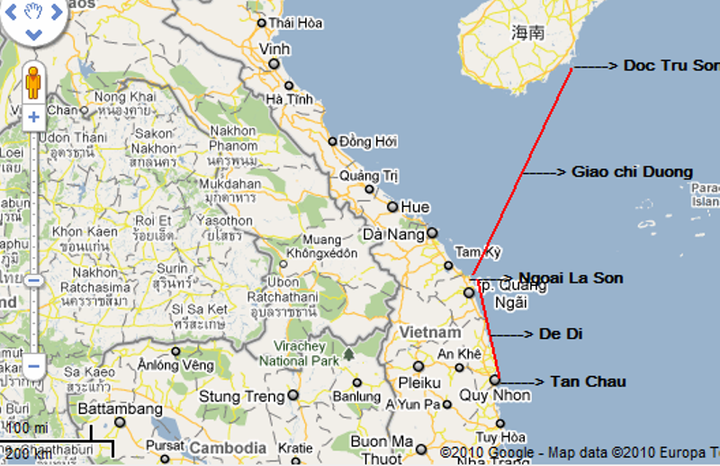 Không riêng gì người xưa, học giả Trung Quốc hiện đại Đàm Kỳ Tương, bàn về tuyến hàng hải từ Trung Quốc xuống các nước Ðông Nam Á cũng khẳng đinh không thể đi qua Tây Sa [Hoàng Sa], Nam Sa[Trường Sa] được: