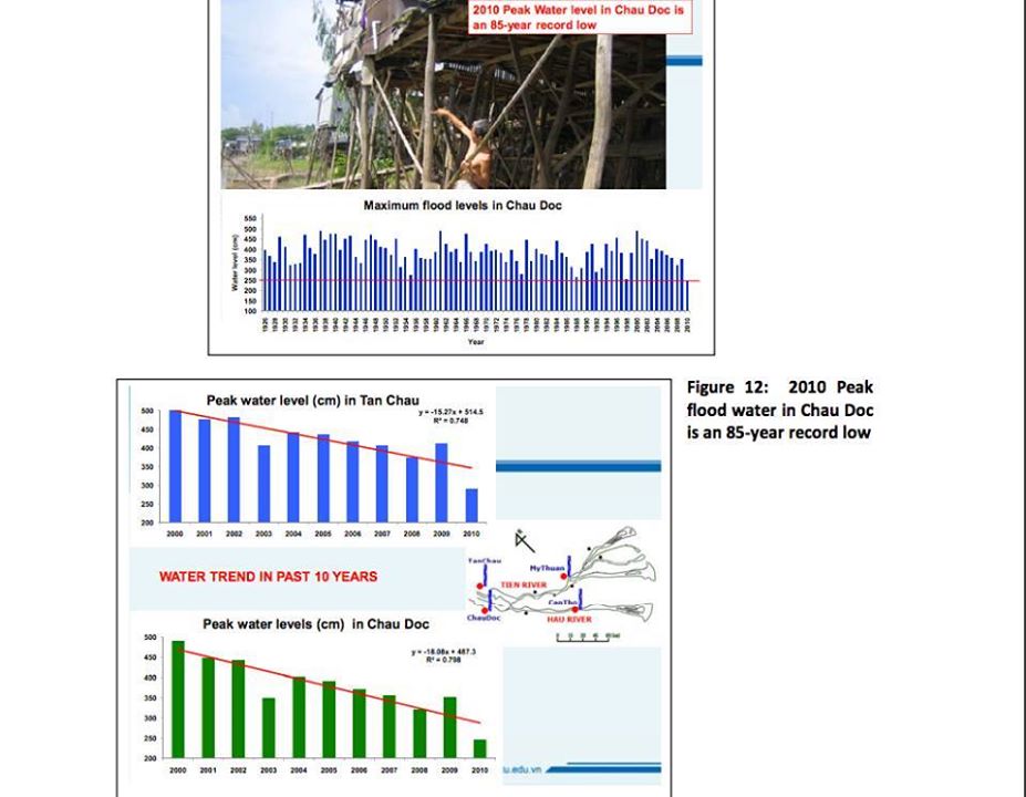Dữliệu thủy văn năm 2010, lượng nước chảy qua Châu Đốc thấp nhất trong 85 năm qua