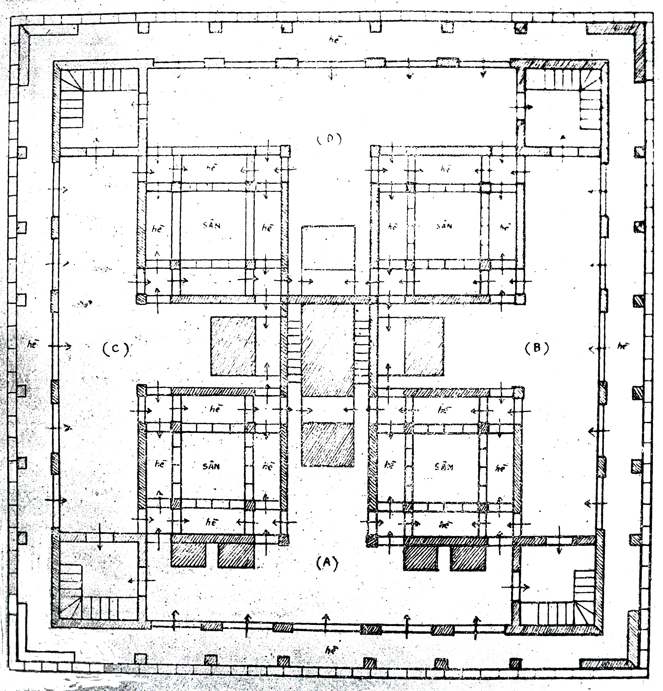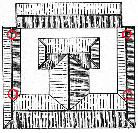 Hình 14: Bình đồ tháp Hòa Phong với tượng Tứ Thiên Vương ở bốn góc.