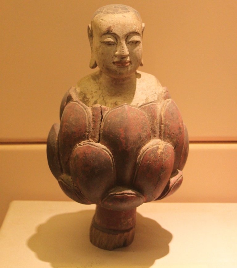 Hình 4: Thích Ca sinh ra từ hoa sen, Hiện vật Bảo tàng Lịch sử, thế kỷ XIV-XV, ảnh: Trần Trọng Dương.