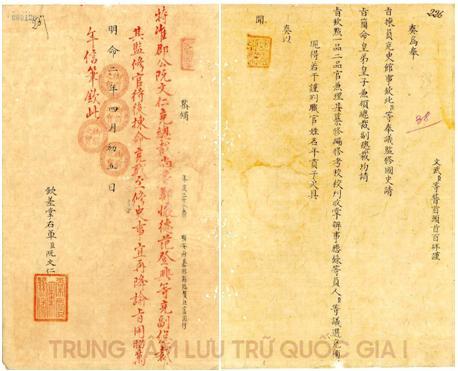 (Trích) Bản Tấu năm Minh Mệnh thứ 2 (1821) về việc phụng chỉ chọn người làm việc trong Quốc sử quán
