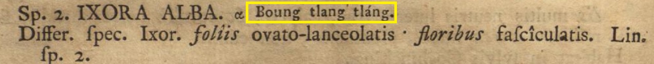 - Trong tiếng Việt thế kỷ 17 có 3 tổ hợp phụ âm: /bl/, /tl/ và /ml/ được ghi bằng trong từ điển VBL, như: blời(trời),tlước (trước), mlời (lời). Trong từ điển VL (1772 & 1838) các phụ âm kép này được ghi bằng các chữ , như chữ Quốc ngữ ngày nay. Tuy nhiên, trong TVĐT của Loureiro, chữ kép vẫn được dùngghi âm vị /ʈ/ mà chữ Quốc ngữ ngày nay ghi bằng tổ hợp chữ cái , ví dụ: Tlầu (trầu), Tlám (trám), Tle (tre). Trong 1068 tên thực vật bằng chữ Quốc ngữ của TVĐT, chúng tôi tìm được 84 tên ghi với chữ kép , bên cạnh các tên viết với , như: trúc, trâm, (cỏ) tranh… Dưới đây là từ Boung tlang tláng “Bông trang trắng” ở (tr.76)