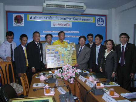 Tại Mụcđahán, đoàn gặp gỡ Tỉnh trưởng và bà con hội Việt kiều, đi thăm Chùa Tháp Luông. Tại Khỏnkèn, đoàn đến thăm và làm việc với Tổng Lãnh sự quán Việt Nam, đi thăm Tháp Thong Wen, Hồ và Công viên Khỏnkèn và Chùa Một cột (phiên bản) do bà con Việt Kiều, Tổng Lãnh sự Quán Việt Nam đầu tư xây dựng. Chiều ngày 16/11, Đoàn đã làm việc với Sở Du lịch và Thể thao tỉnh Khỏnkèn do ngài Montree Boonyaprom – Giám đốc Sở Du lịch và Thể thao dẫn đầu. Cùng làm việc còn có Giám đốc Công an Du lịch, Văn phòng Du lịch Thái Lan tại Khỏnkèn, Hiệp hội doanh nghiệp du lịch Khỏn kèn, Hiệu trưởng Trường đào tạo huấn luyện Thể thao tỉnh Khỏnkèn. Hai bên đã thông báo tình hình hoạt động du lịch, đào tạo huấn luyện thể dục thể thao của mỗi bên. Hai bên thống nhất nhận định giữa Khỏnkèn và Nghệ An có mối tương đồng chung, được xem là nơi đào tạo huấn luyện và cung cấp nhiều các vận động viên thể thao cho cả nước, đoạt nhiều thành tích cao tại các đấu trường trong nước và châu lục về các môn bóng đá, bóng bàn, cầu lông, tennis, môn vật, pencatsilát…Lãnh đạo 2 Sở đã đề xuất hợp tác phát triển du lịch và giao lưu thể thao giữa 2 tỉnh trong dịp gần nhất. Nhân dịp này Giám đốc Sở Văn hóa, Thể thao và Du lịch Nghệ An đã mời Sở Du lịch và Thể thao tỉnh Khỏnkèn và các Sở liên quan sang thăm và làm việc tại tỉnh Nghệ An.