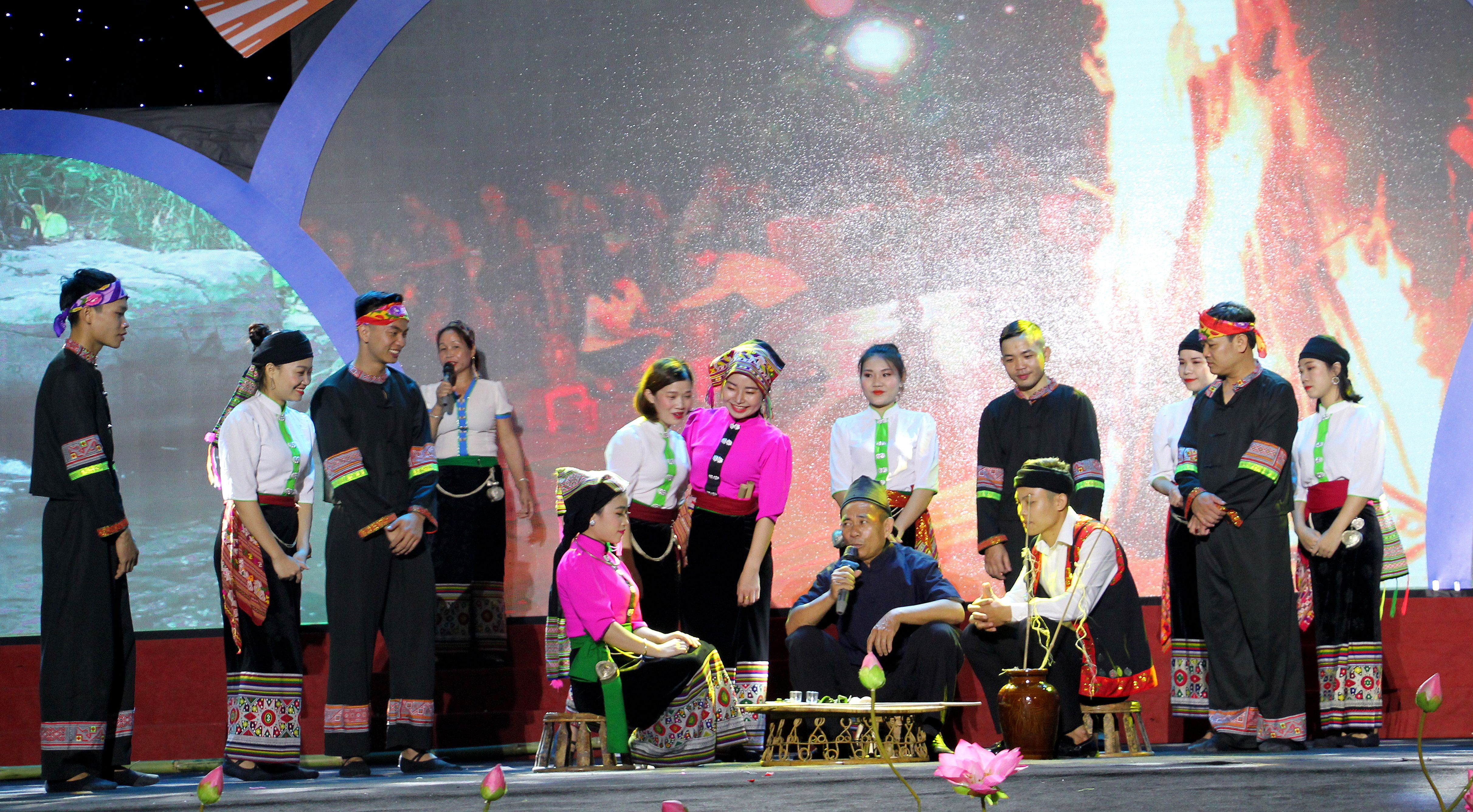 Tiết mục tái hiện nghi lễ xin dâu trong đám cưới của người Thái của đoàn Quế Phong