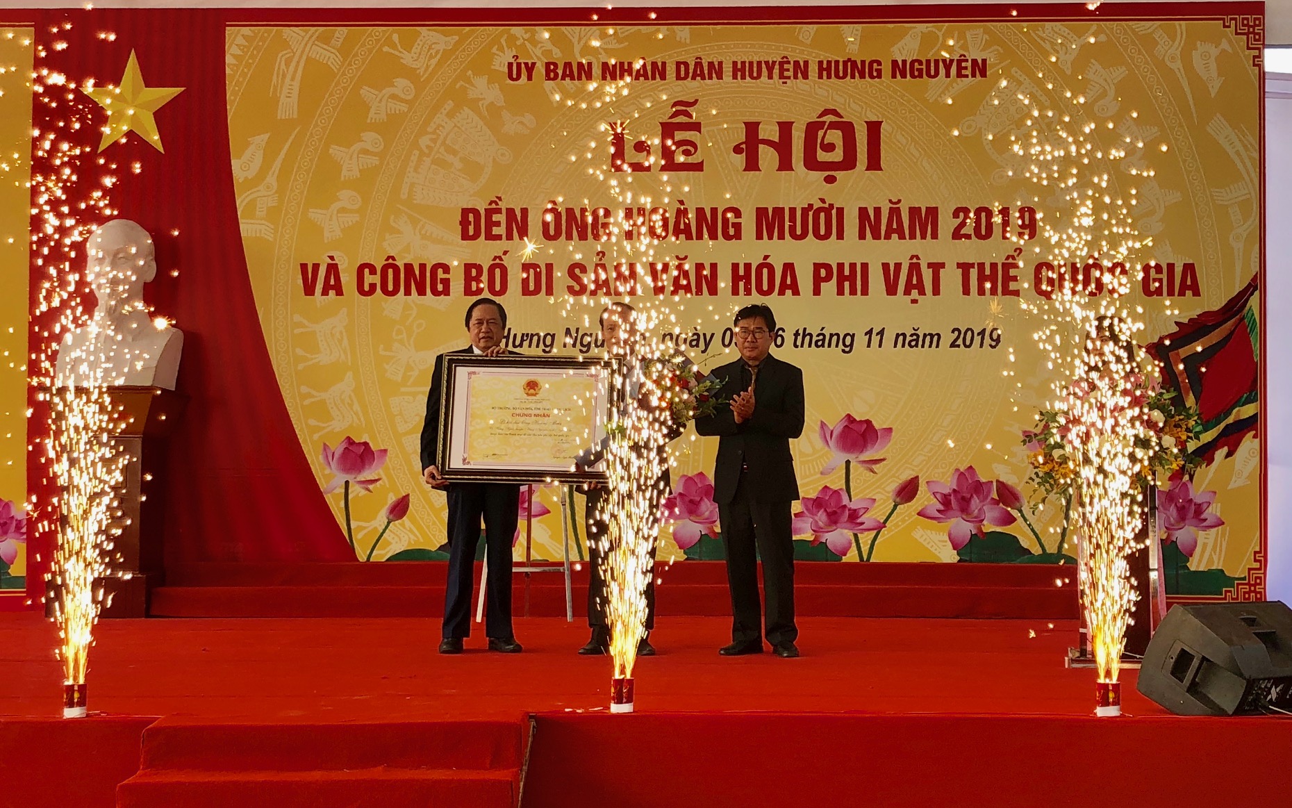 Trong không khí linh thiêng của buổi lễ, Ban tổ chức đã công bố Quyết định số 2970/QĐ-BVHTTDL, ngày 27/8/2019 của Bộ trưởng Bộ Văn hóa, Thể thao và Du lịch công nhận Lễ hội đền Ông Hoàng Mười, xã Hưng Thịnh, huyện Hưng Nguyên, tỉnh Nghệ An là di sản văn hóa phi vật thể Quốc gia.