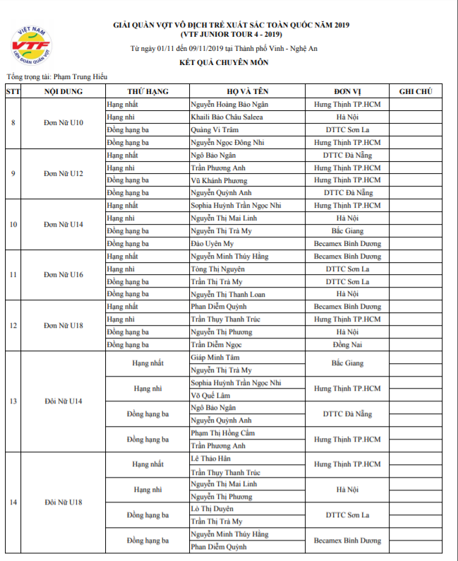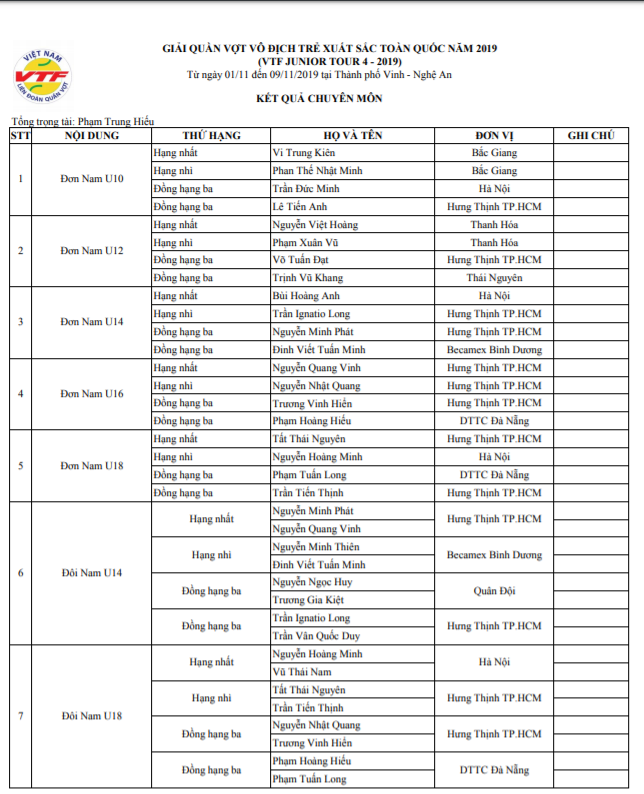 Bế mạc Giải quần vợt trẻ xuất sắc toàn quốc năm 2019 tại Nghệ An