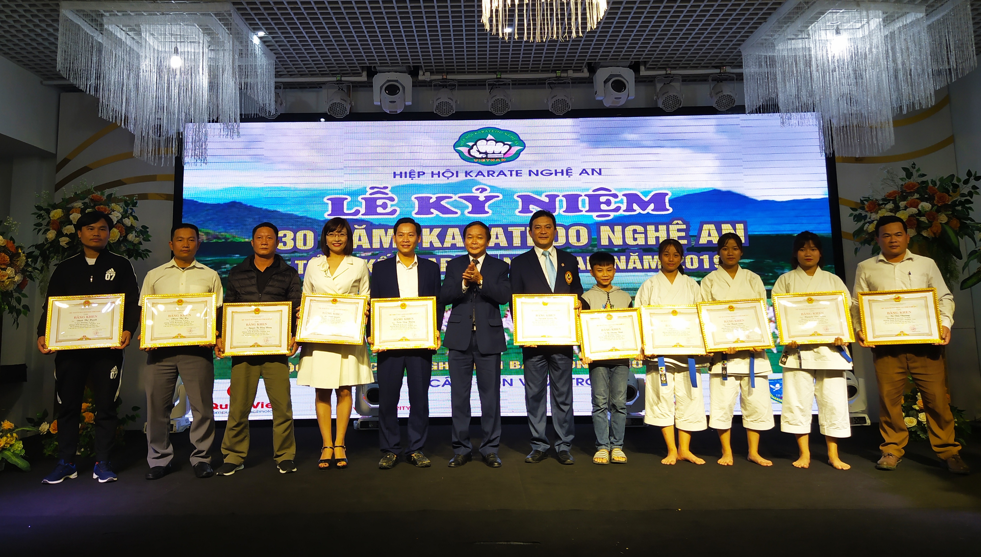 Tại buổi lễ, Karatedo Nghệ An có nhiều cá nhân và tập thể đã vinh dự được nhận nhiều bằng khen, giấy khen của UBND tỉnh, Sở VH&TT và Hiệp hội Karatedo Nghệ An.