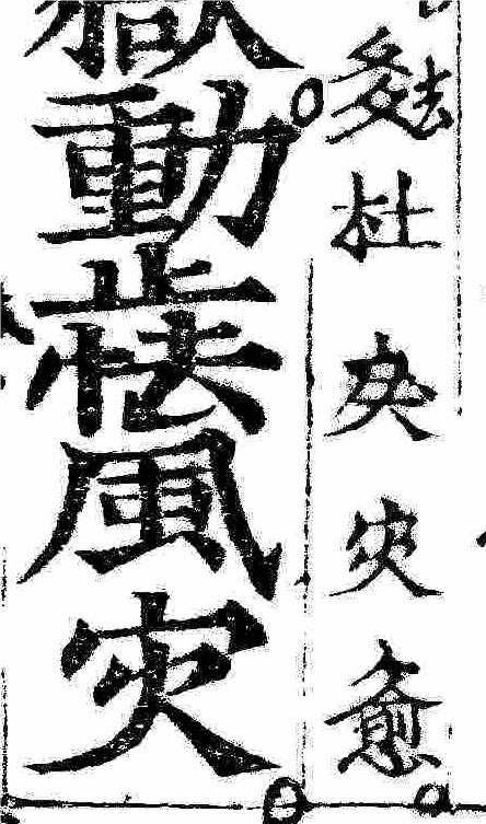 Hình minh họa chữ Nôm gió cổ viết dạng {cá+dũ 个+愈} chụp lại từ bản Nôm Phật Thuyết Đại Báo Phụ Mẫu Ân Trọng Kinh, trang 12a (câu Nôm: đi đỗ lệ tai gió):