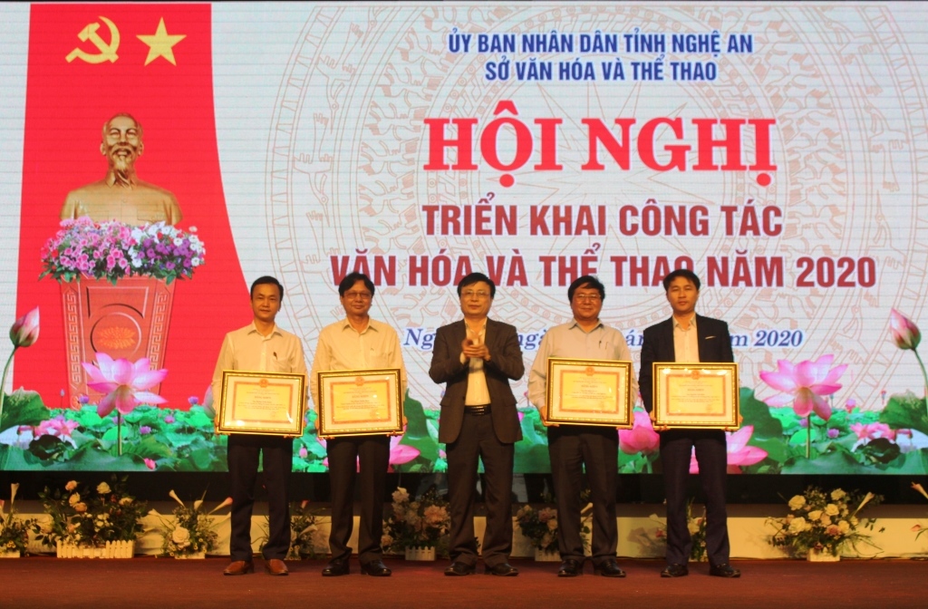 Hoạt động nghệ thuật, thư viện, điện ảnh, triển lãm, nhiếp ảnh, mỹ thuật,… có bước tiến bộ rõ nét, đã thực sự đi vào chất lượng, đảm bảo kịp thời đạt hiệu quả cao trong phục vụ nhiệm vụ chính trị, phục vụ nhân dân. Nghệ thuật chuyên nghiệp và không chuyên đều đạt thành tích cao: 04 HCV và 05 HCB cá nhân tại Liên hoan Tuồng và Dân ca kịch toàn quốc năm 2019; 01 HCV chương trình, 02 HCV cá nhân và 03 HCB cá nhân tại Hội diễn nghệ thuật quần chúng “Câu hò nối những dòng sông”. Nghệ An cũng giành giải cao tại cuộc thi Đại sứ văn hóa đọc cấp toàn quốc.