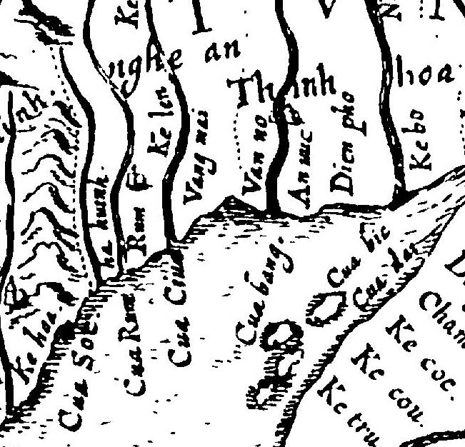 Hình 2b: Bốn cửa biển vùng Thanh - Nghệ mà giáo sĩ Đắc Lộ đã tới trên lữ trình truyền giáo cuối thập niên 1620[4]