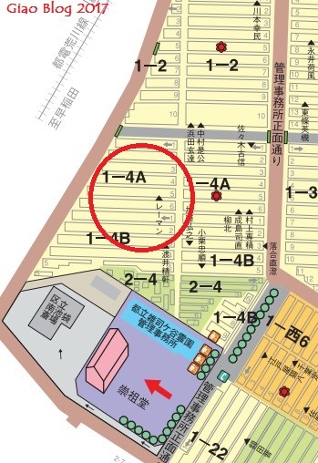 Mộ cụ Trần Đông Phong ở trong vòng màu đỏ, còn văn phòng quản trang thì ở ngay phía dưới chỗ ghi 2-4