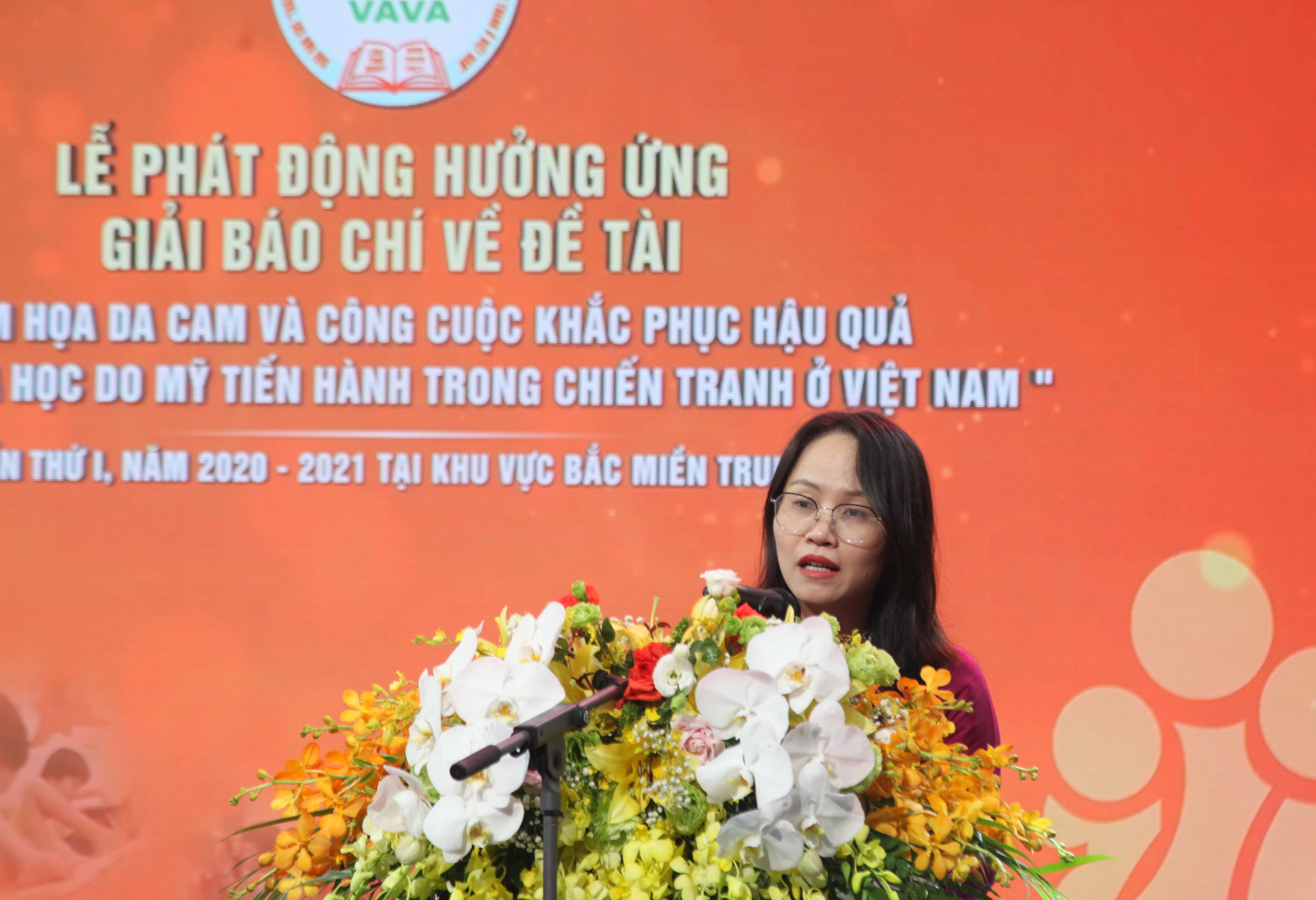 Thay mặt các cơ quan báo chí Bắc miền Trung, nhà báo Phạm Thùy Vinh - Tổng Biên tập Tạp chí Sông Lam phát biểu hưởng ứng Giải Báo chí về đề tài "Thảm họa da cam và công cuộc khắc phục hậu quả chất độc hóa học do Mỹ tiến hành trong chiến tranh ở Việt Nam"
