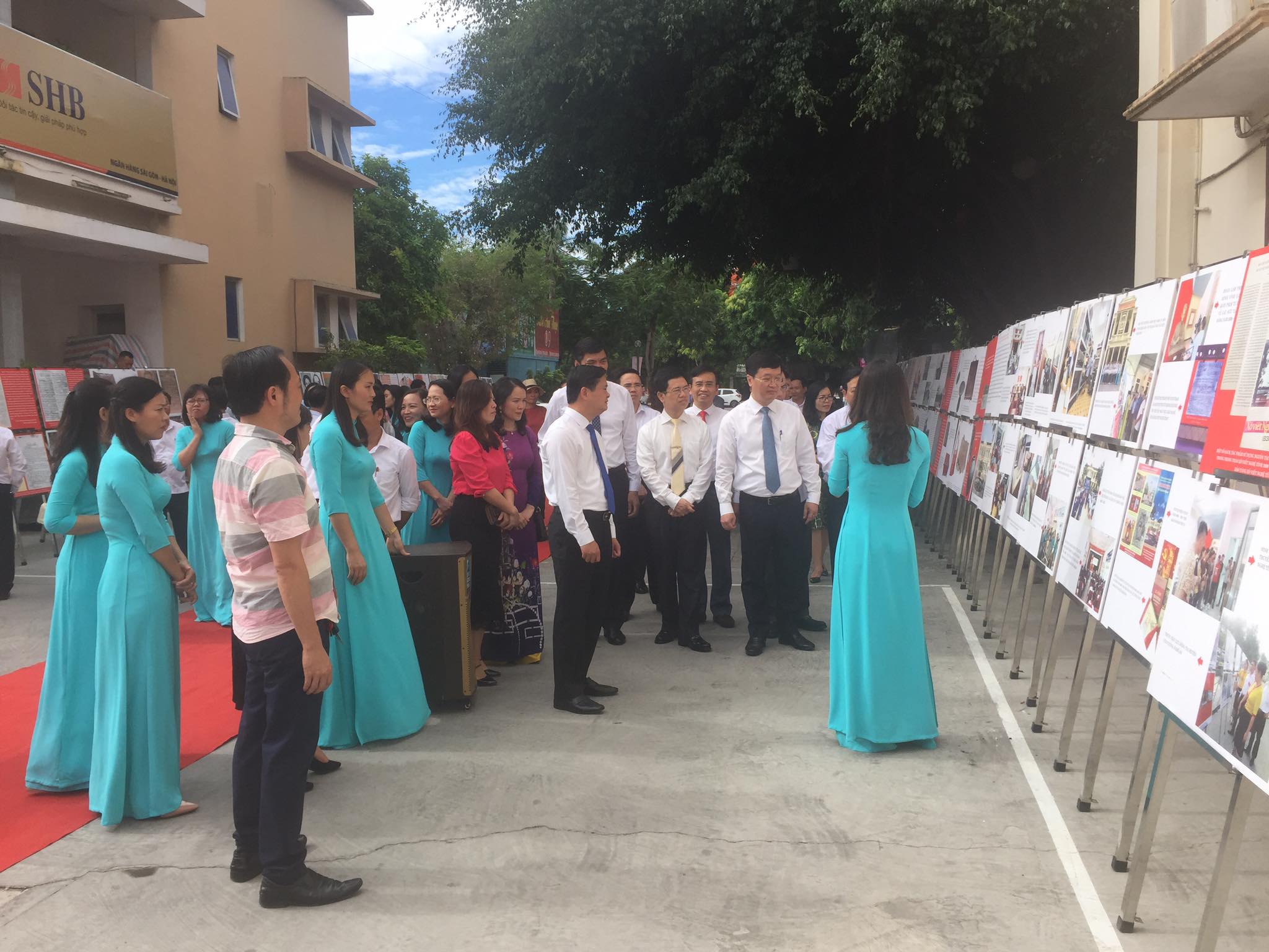 Các đại biểu và các nhà báo xem triển lãm “Một số hình ảnh về sưu tập báo chí, truyền đơn, tài liệu của Đảng trong phong trào Xô viết Nghệ Tĩnh”
