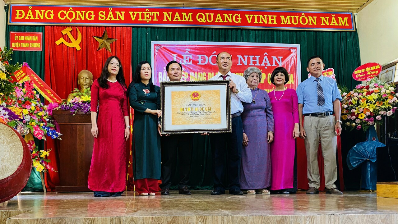 Bà Quách Thị Cường - Phó Giám đốc Sở Văn hóa và Thể thao trao bằng xếp hạng di tích cấp Quốc gia cho địa phương và dòng họ