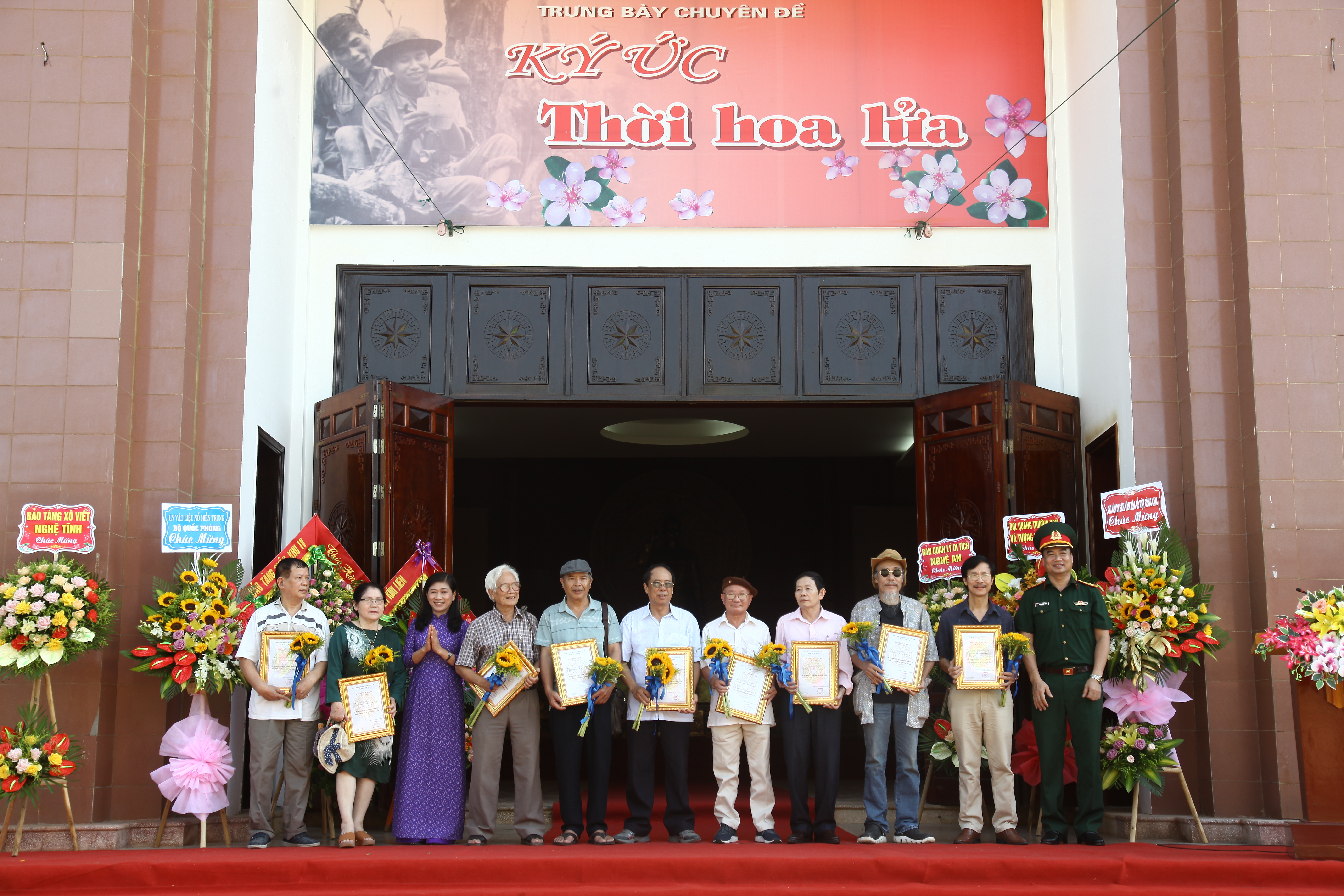 Tại triển lãm, Ban Tổ chức đã tri ân tặng hoa cho bà Nguyễn Thị Hồng Minh (vợ của liệt sỹ Nguyễn Trí Phước), gia đình thương binh ¼ Nguyễn Sỹ Ngọc, Anh hùng LLVT Nguyễn Đăng Chế và Anh hung LLVT Hồ Thị Thu Hiền