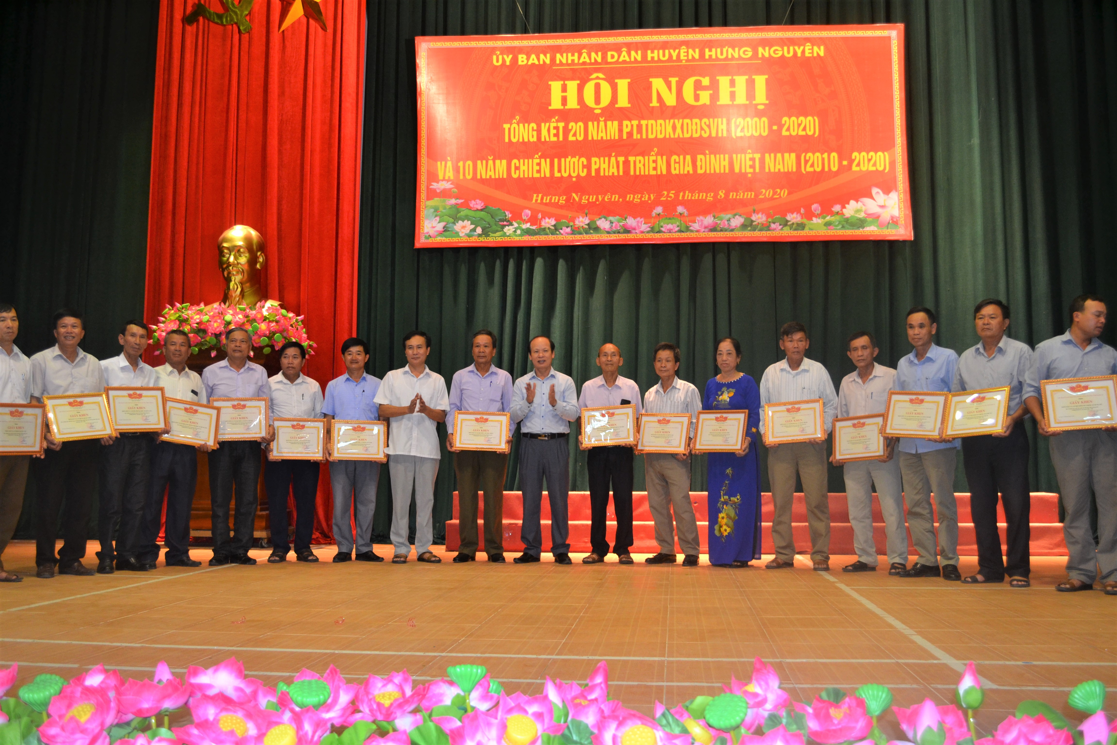 Tại hội nghị, có 3 tập thể và 4 cá nhân xuất sắc trong Ban Chỉ đạo, 21 tập thể xã xóm và 36 hộ gia đình có thành tích tiêu biểu trong phong trào “Toàn dân đoàn kết xây dựng đời sống văn hóa” và “Chiến lược phát triển gia đình Việt Nam” giai đoạn 2010 - 2020 được trao tặng giấy khen.