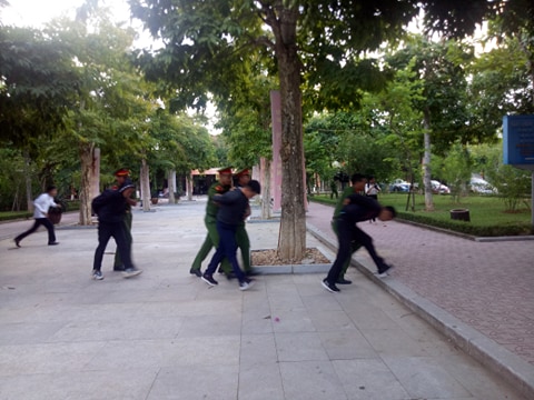 Lực lượng công an bắt các đối tượng phá hoại, gây mất trật tự