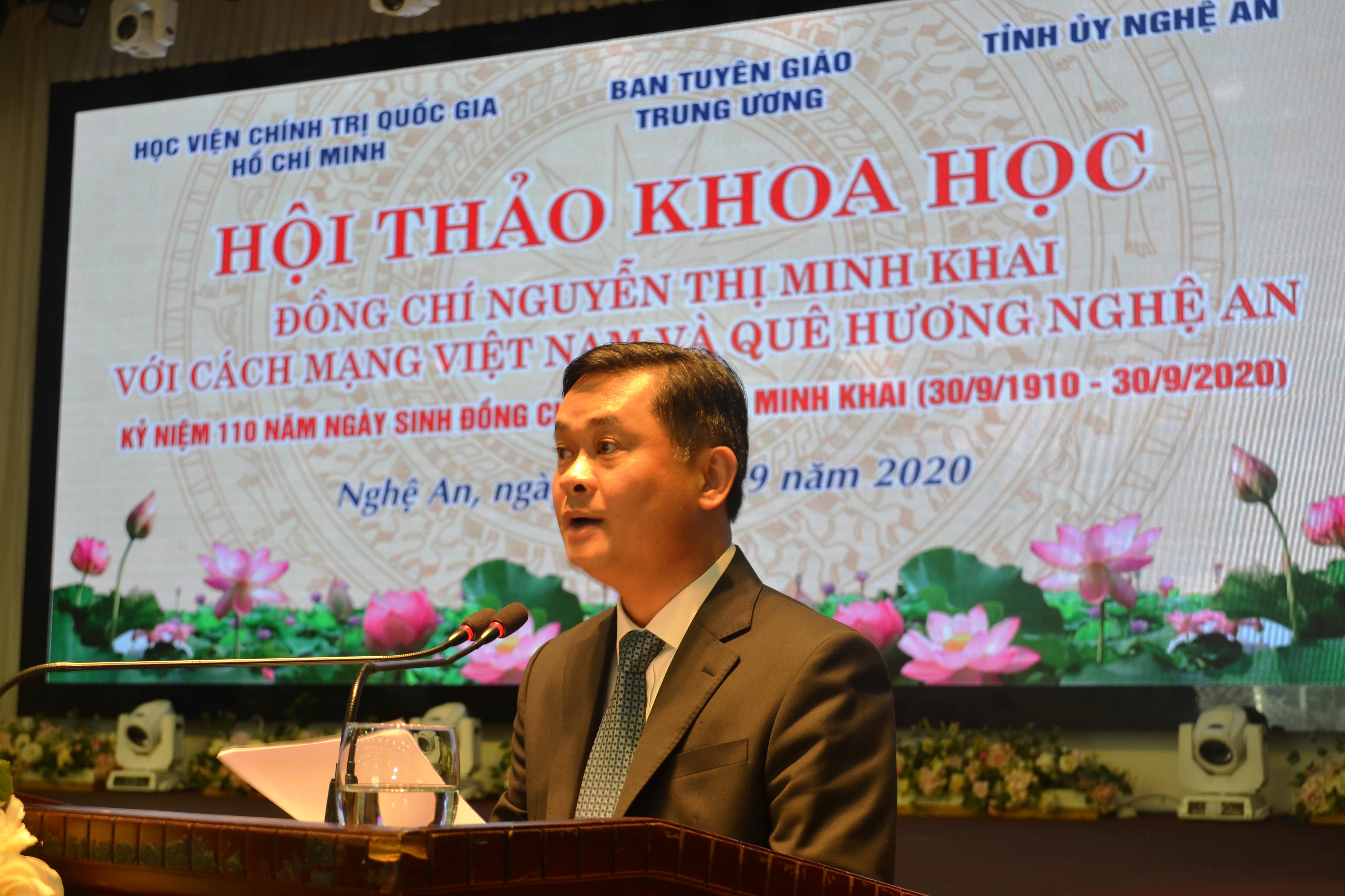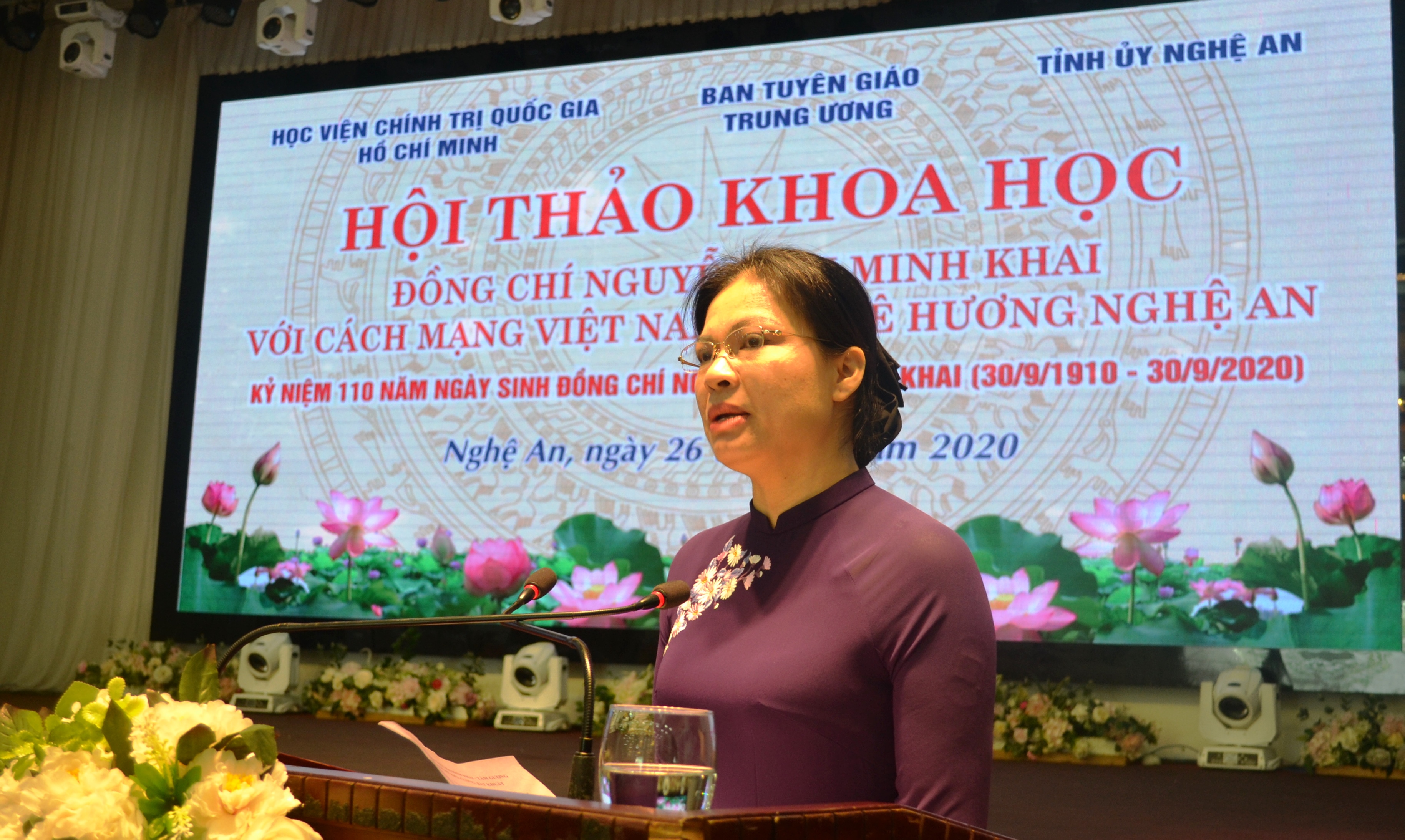Sáng 26.9, tại TP. Vinh, Học viện Chính trị Quốc gia Hồ Chí Minh phối hợp với Ban Tuyên giáo Trung ương và Tỉnh ủy Nghệ An tổ chức Hội thảo khoa học “Đồng chí Nguyễn Thị Minh Khai với cách mạng Việt Nam và quê hương Nghệ An”.