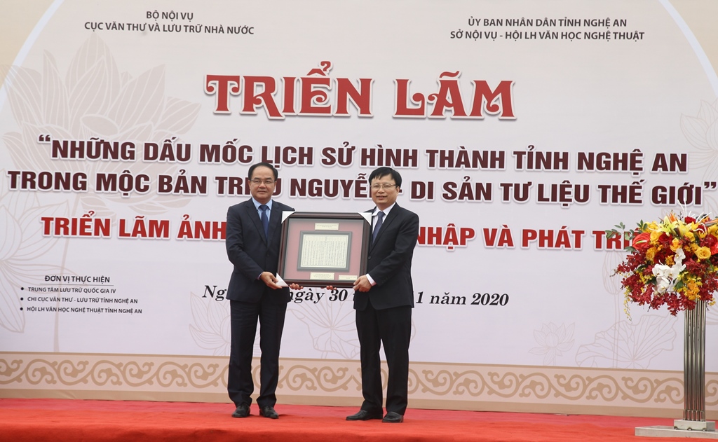 Tại Triển lãm “Những dấu mốc lịch sử hình thành tỉnh Nghệ An trong mộc bản triều Nguyễn - Di sản tư liệu thế giới” và Triển lãm ảnh “Nghệ An hội nhập và phát triển” công chúng được xem 68 hình ảnh Mộc bản quý hiếm được trích ra từ các Mộc bản triều Nguyễn và 100 bức ảnh của 33 nghệ sỹ nhiếp ảnh. Đây là nguồn tư liệu Mộc bản triều Nguyễn khắc ghi về những dấu mốc hình thành và phát triển của tỉnh Nghệ An cũng như chuỗi các hình ảnh về chặng đường phát triển và hội nhập của Nghệ An được tái hiện, trở thành tài sản quý giá của nhân dân Nghệ An nói riêng và dân tộc Việt Nam nói chung. Qua những cứ liệu lịch sử tin cậy, nhiều hình ảnh đặc sắc, quý hiếm sẽ giúp người dân Nghệ An nhớ về nguồn cội, tự hào về bề dày truyền thống của vùng đất “địa linh nhân kiệt”. Từ đó, nhận thức sâu sắc hơn trách nhiệm của bản thân, trân trọng, giữ gìn và phát huy những giá trị lịch sử vô giá cha ông đã gây dựng. Trên cơ sở đó tích cực đóng góp công sức, trí tuệ, góp phần xây dựng quê hương ngày càng phát triển nhanh, bền vững, sớm trở thành một trong những tỉnh khá như sinh thời Bác Hồ hằng mong muốn.