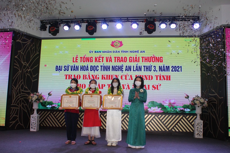 Tại buổi lễ, một tập thể (Phòng Giáo dục và Đào tạo TP. Vinh) và 3 cá nhân (Đinh Nguyễn Hà Trang, Nguyễn Minh Khuê và Nguyễn Thư Lê) đạt giải Nhất đã được tặng Bằng khen của UBND tỉnh. Sở Giáo dục và Đào tạo cũng đã tặng Giấy khen cho 4 tập thể và 3 cá nhân có thành tích xuất sắc trong việc tham gia tổ chức cuộc thi.