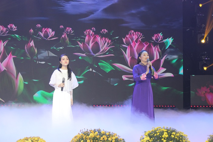 Tiết mục Dân ca Ví, Giặm Nghệ Tĩnh do NSND Hồng Lựu và Ca sĩ Hà Quỳnh Như thể hiện. Ảnh Phong Hồ