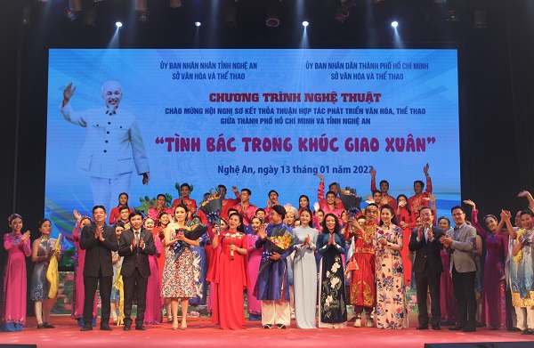 Chương trình nghệ thuật “Tình Bác trong khúc giao Xuân” chào mừng Hội nghị sơ kết thỏa thuận hợp tác phát triển văn hóa, thể thao giữa thành phố Hồ Chí Minh và tỉnh Nghệ An.