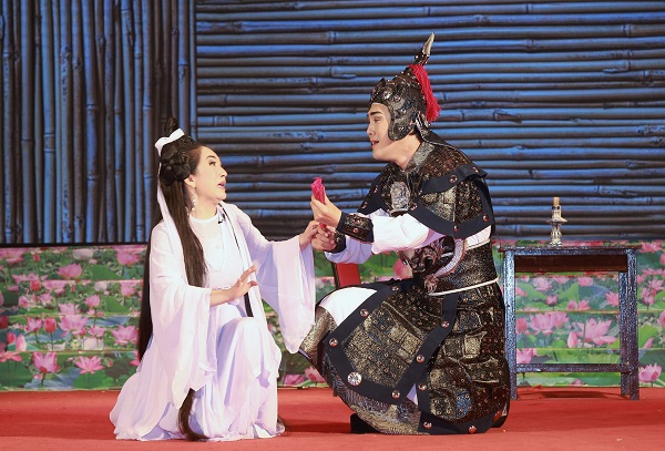 Tiêt mục cải lương trích đoạn" Lục Vân Tiên - Kiều Nguyệt Nga" của đoàn ca múa nhạc Bông Sen Thành phố Hồ Chí Minh (ảnh Phong Trang)