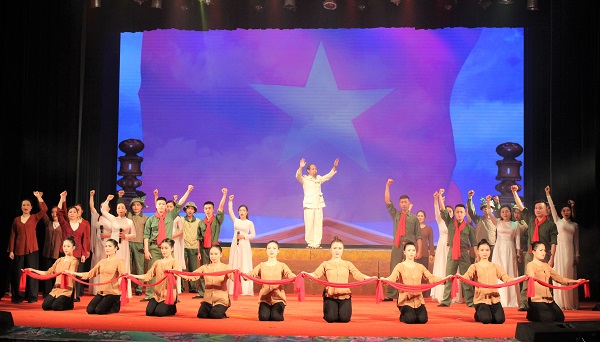 Một số tiết mục ca ngợi Đảng - Bác Hồ do các nghệ sỹ, diễn viên Trung tâm Nghệ thuật truyền thống tỉnh Nghệ An biểu diễn. Ảnh Hồ Hà
