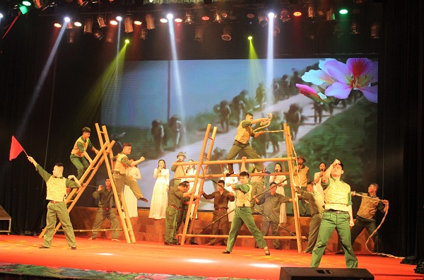 Hoạt cảnh " giải phóng Điện Biên" tạo ấn tượng trong lòng khán giả. Ảnh Hồ Hà