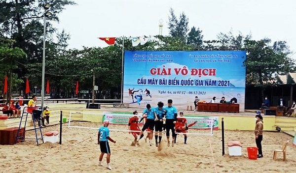 Giải Cầu Mây bãi biển quốc gia được tổ chức tại Nghệ An năm 2021. Ảnh VHTT