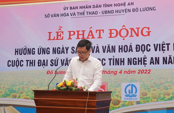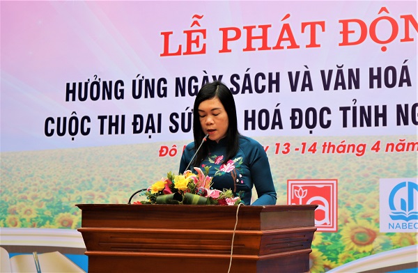 Thay mặt lãnh đạo Sở Văn hóa và Thể thao, bà Quách Thị Cường - Phó Giám đốc Sở phát động hưởng ứng Ngày Sách và Văn hoá đọc Việt Nam, Cuộc thi Đại sứ văn hóa đọc tỉnh Nghệ An lần thứ IV, năm 2022.