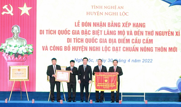 Đón nhận Bằng xếp hạng Di tích lịch sử Quốc gia đặc biệt Đền thờ và Lăng mộ Nguyễn Xí; Di tích lịch sử Quốc gia Địa điểm Cầu Cấm và công bố huyện Nghi Lộc đạt chuẩn Nông thôn mới.