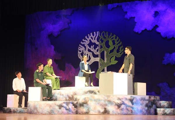 Trung tâm Nghệ thuật truyền thống tỉnh Nghệ An mở màn Liên hoan với vở diễn “Cánh cò trong bão” của tác giả Nguyễn Quang Vinh, chuyển thể sang kịch bản dân ca - NSUT An Ninh, đạo diễn - NSND Lê Hùng, âm nhạc - NSƯT Đình Đắc, biên đạo múa - NSƯT Diễm Hằng…