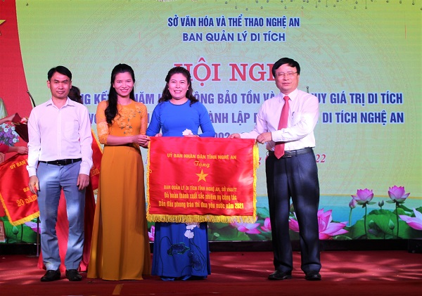 Ghi nhận những kết quả đạt được trong 20 năm qua, Uỷ ban dân tỉnh Nghệ An đã trao tặng Ban Quản lý Di tích Nghệ An bức trướng mang dòng chữ “Ban quản lý Di tích Nghệ An 20 năm xây dựng và phát triển 2002-2022”; trao tặng Cờ thi đua của Ủy ban nhân dân tỉnh cho Ban Quản lý Di tích Nghệ An đã hoàn thành xuất sắc nhiệm vụ công tác, dẫn đầu phong trào thi đua yêu nước năm 2021.