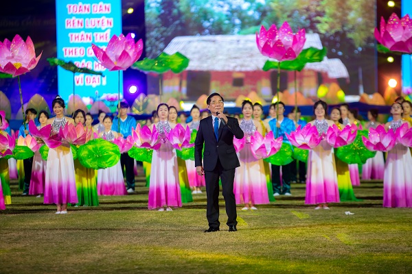 Đồng chí Nguyễn Đức Trung - Phó Bí thư Tỉnh Uỷ - Chủ tịch UBND tỉnh đọc lời kêu gọi " Toàn dân tập thể dục của Bác Hồ"