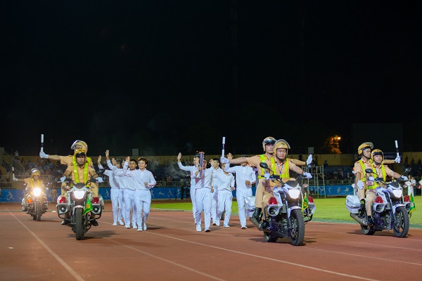 Ngọn lửa sau đó được chuyển cho đồng chí Nguyễn Văn Thông, Phó Bí thư thường trực Tỉnh uỷ thắp sáng đài lửa của Đại hội Thể dục thể thao tỉnh Nghệ An lần thứ IX. Ngọn lửa sẽ tiếp sức và cổ vũ cho các VĐV thi tài trong suốt thời gian diễn ra Đại hội và tiếp thêm sức mạnh cho Thể thao Nghệ An trên con đường đổi mới, hội nhập phát triển cùng Đảng bộ và Nhân dân tỉnh nhà xây dựng quê hương văn minh, giàu đẹp mong muốn của Chủ tịch Hồ Chí Minh.