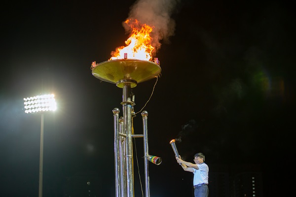 Nghi thức thắp lửa truyền thống của Đại hội. ảnh Hồ Hà