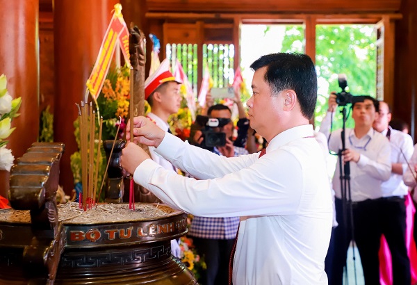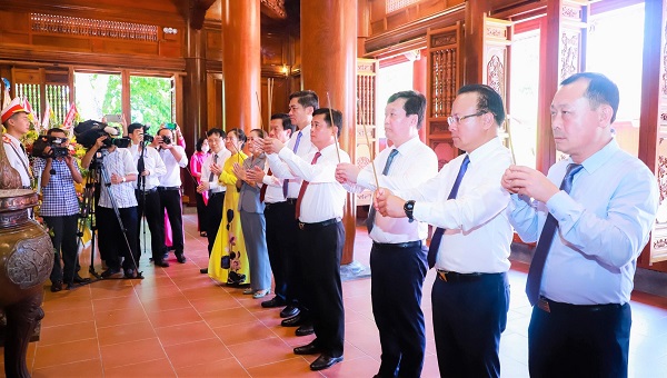Các đồng chí Thường trực, Ban Thường vụ Tỉnh uỷ, lãnh đạo các ban, sở, ngành, địa phương dâng hương. Ảnh Thành Duy