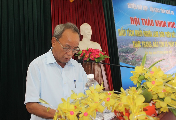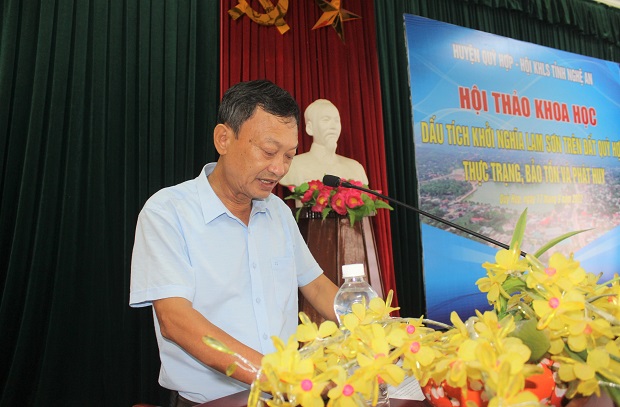 Phát biểu đề dẫn hội thảo, Th.s Nguyễn Quốc Hồng – Chủ tịch Hội khoa học Lịch sử Nghệ An cho biết: Năm 1424-1425 vùng đất miền núi Nghệ An đã trở thành vị trí chiến lược của nghĩa quân Lam Sơn để xây dựng và củng cố lực lượng. Cũng như nhiều địa phương khác, vùng đất Quỳ Hợp hiện nay còn lưu giữ nhiều dấu tích, di tích, sự tích liên quan đến hoạt động của nghĩa quân Lam Sơn. Theo kiểm kê, trên địa bàn miền núi Nghệ An có trên 20 di tích, thì huyện Quỳ Hợp có tới 10 di tích, địa điểm liên quan. Điều đó chứng tỏ rằng vùng đất Quỳ Hợp đã từng là căn cứ vô cùng quan trọng, có ý nghĩa quyết định trong việc tổ chức lực lượng để tiến về giải phóng thành Nghệ An lúc bấy giờ, và tạo tiền đề cho việc đánh đuổi hoàn toàn quân minh ra khỏi biên giới Đại Việt lập nên triều đại Lê sơ.