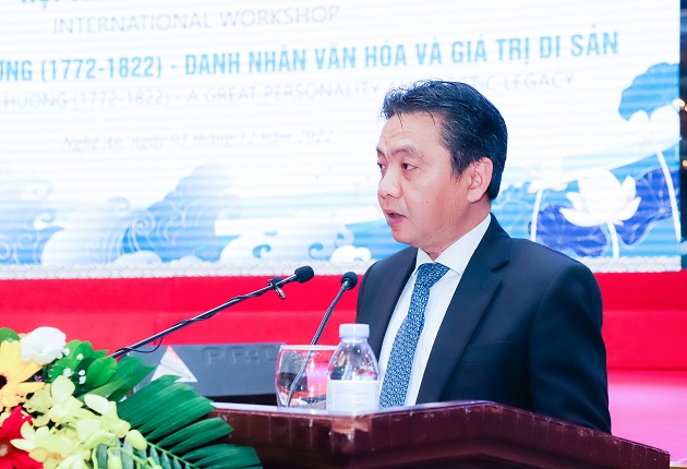 Hội thảo do tỉnh Nghệ An phối hợp cùng Bộ Văn hóa, Thể thao và Du lịch và Ủy ban quốc gia UNESCO Việt Nam tổ chức vào sáng nay (03/12/2022) tại thành phố Vinh dưới sự chủ trì của TS Hoàng Đạo Cương - Thứ trưởng Bộ VH,TT&DL; đồng chí Nguyễn Đức Trung - Phó Bí thư Tỉnh ủy, Chủ tịch UBND tỉnh Nghệ An; PGS.TS Biện Minh Điền - Giảng viên cao cấp ĐH Vinh và PGS.TS Nguyễn Hữu Sơn - Phó Viện trưởng Viện Văn học.