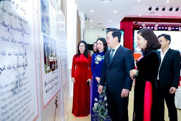 Các đồng chí Đại biểu tham quan triển lãm thơ Hồ Xuân Hương. Ảnh: Phạm Bằng