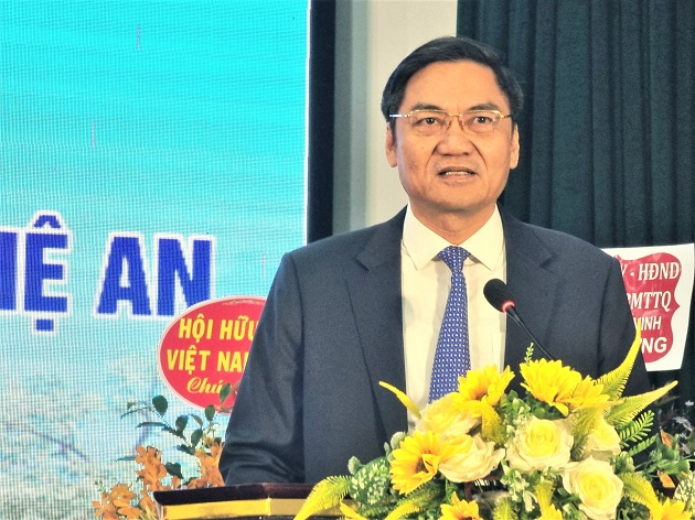 Phát biểu tại buổi lễ, ông Hoàng Nghĩa Hiếu - Phó Bí thư Tỉnh ủy vui mừng gửi lời chúc mừng nống nhiệt nhất đến toàn thể các vị khách quý và bà con có mặt tại buổi lễ kỷ niệm 92 năm Quốc khánh Vương quốc Thái Lan, kỷ niệm 20 năm thành lập Hội Hữu nghị Việt Nam - Thái Lan tỉnh Nghệ An. Đồng thời, Phó Bí thư Tỉnh ủy cũng thông tin đến hội viên tình hình phát triển kinh tế xã hội tỉnh Nghệ An trong thời gian qua và đánh giá cao các hoạt động hợp tác phát triển kinh tế, y tế, giáo dục, văn hóa du lịch… giữa Nghệ An và Thái Lan, những thành tựu đó chính là nền móng cho quan hệ hợp tác toàn diện và nâng tầm chiến lược giữa hai nước. Phó Bí thư Tỉnh ủy nhấn mạnh: lễ kỷ niệm 20 năm thành lập Hội Hữu nghị Việt Nam - Thái Lan tỉnh Nghệ An nhằm ôn lại những kỷ niệm, những dấu ấn của chặng đường 20 năm của Hội hữu nghị Việt Nam - Thái Lan tỉnh Nghệ An đã trải qua và sự kiện hôm nay là sự đánh dấu một thời kỳ mới, nhiệm vụ mới, quyết tâm mới của Hội nhằm thực hiện đường lối đối ngoại nhân dân của Đảng, Nhà nước của Tỉnh ủy, HĐND, UBND, UBMTTQ, Liên hiệp các tổ chức hữu nghị tỉnh Nghệ An, góp phần tăng cường hợp tác toàn diện mang tầm chiến lược giữa Việt Nam và Thái Lan. Thay mặt Tỉnh ủy, HĐND, UBND, UBMTQ tỉnh Nghệ An, Phó Bí thư Tỉnh ủy biểu dương những thành tích xuất sắc đã đạt được trong 20 năm qua của Hội Hữu nghị Việt Nam - Thái Lan tỉnh Nghệ An và tin tưởng rằng, Hội sẽ phát huy kết quả đó trong thời gian tới nhằm góp phần tich cực thực hiện đường lối đối ngoại nhân dân do Chủ tịch Hồ Chí Minh đề xướng trong quá trình đấu tranh giải phóng dân tộc, thống nhất đất nước và xây dựng chủ nghĩa xã hội ở Việt Nam.
