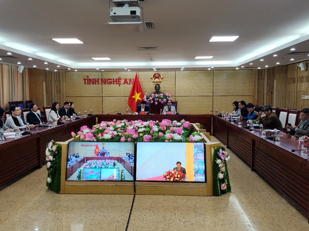 Toàn cảnh điểm cầu tại Nghệ An. Ảnh: Trọng Cường