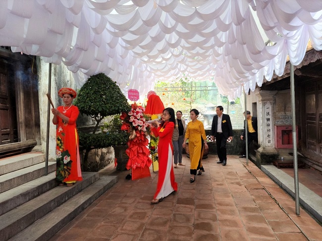 Về dự buổi lễ có đồng chí: Võ Thị Minh Sinh - Ủy viên BTV Tỉnh ủy, Chủ tịch Ủy ban Mặt trận Tổ quốc Việt Nam tỉnh; đại diện lãnh đạo các sở, ban ngành cấp tỉnh, huyện Diễn Châu; xã Cổ Loa, huyện Đông Anh (Hà Nội); cùng đông đảo nhân dân và du khách thập phương.
