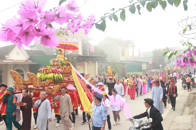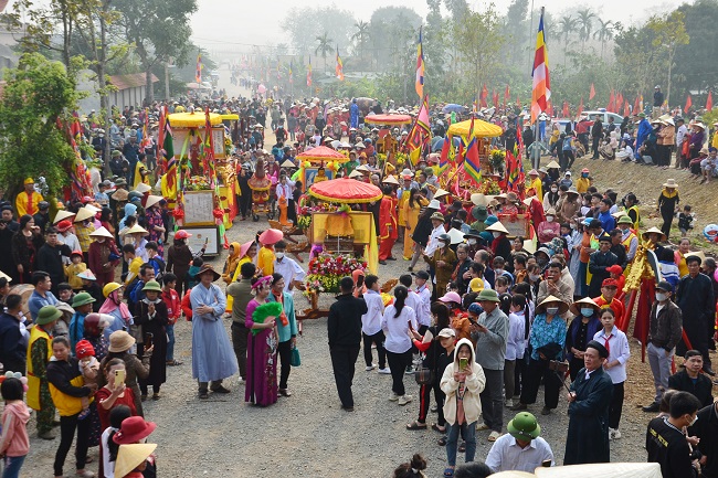 Người dân và du khách rước kiệu trong lễ hội đền - chùa Gám. Ảnh: Ánh Tuyết