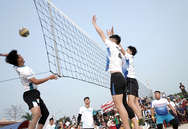 Thi đấu bóng chuyền tại lễ hội đền - chùa Gám. Ảnh: Ánh Tuyết