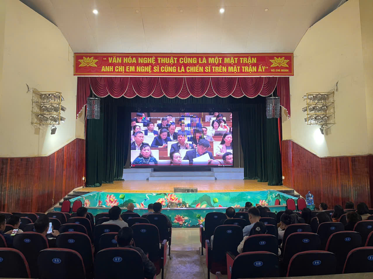 Cùng dự Hội nghị có các đồng chí Ủy viên Bộ Chính trị, Ban Bí thư, Ủy viên Ban Chấp hành Trung ương Đảng dự tại điểm cầu Trung ương và các điểm cầu trong cả nước; lãnh đạo các ban, bộ, ngành, Mặt trận Tổ quốc, các đoàn thể Trung ương, Ủy viên Ủy ban Kiểm tra Trung ương, Ủy viên Quân ủy Trung ương, Đảng ủy Công an Trung ương, Đảng ủy các cơ quan Đảng Trung ương, Đảng ủy Chính phủ, Đảng ủy Quốc hội, Đảng ủy Mặt trận Tổ quốc các đoàn thể Trung ương; lãnh đạo cấp cục, vụ và tương đương thuộc các cơ quan tham mưu, giúp việc của Đảng ở Trung ương, Đảng ủy các cơ quan Đảng Trung ương; Chủ tịch Hội đồng thành viên/Hội đồng quản trị, Tổng giám đốc các tập đoàn, tổng công ty nhà nước, ngân hàng nhà nước; lãnh đạo các Ban chiến lược, đầu tư, tài chính, tín dụng, phát triển doanh nghiệp; các đồng chí cấp trưởng cục, vụ, viện, nhà hát thuộc Bộ Văn hóa, Thể thao và Du lịch; các Nghệ sĩ Nhân dân thuộc lĩnh vực điện ảnh, sân khấu, múa, âm nhạc, phát thanh truyền hình; lãnh đạo Liên hiệp các Hội Văn học nghệ thuật Việt Nam; các tác giả được tặng Giải thưởng Hồ Chí Minh và Giải thưởng Nhà nước về văn học, nghệ thuật; các nhà nghiên cứu văn hóa, nghệ thuật.