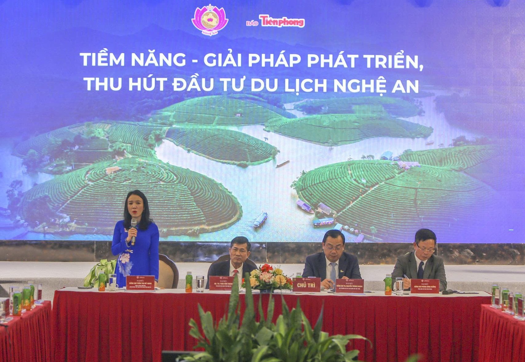 Chủ trì hội thảo gồm các ông bà: Nguyễn Trùng Khánh - Cục trưởng cục Du lịch Quốc gia Việt Nam; GS.TS Thái Văn Thành - Phó Chủ tịch UBND tỉnh Nghệ An; Trần Thị Mỹ Hạnh - Ủy viên BCH Tỉnh ủy, Giám đốc Sở Văn hóa, Thể thao và Du lịch tỉnh Nghệ An; Nhà báo Phùng Công Sưởng - Tổng Biên tập Báo Tiền Phong.